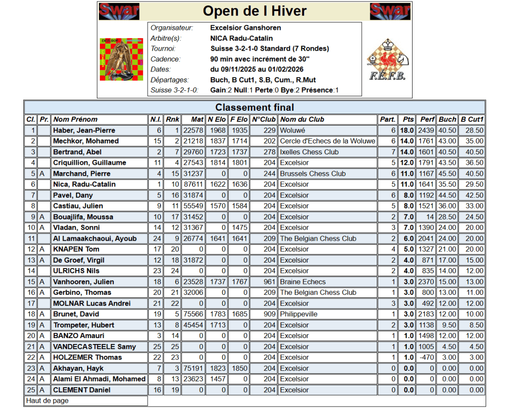 Le dimanche 25/01/26 ronde 6 Interclubs à domicile !